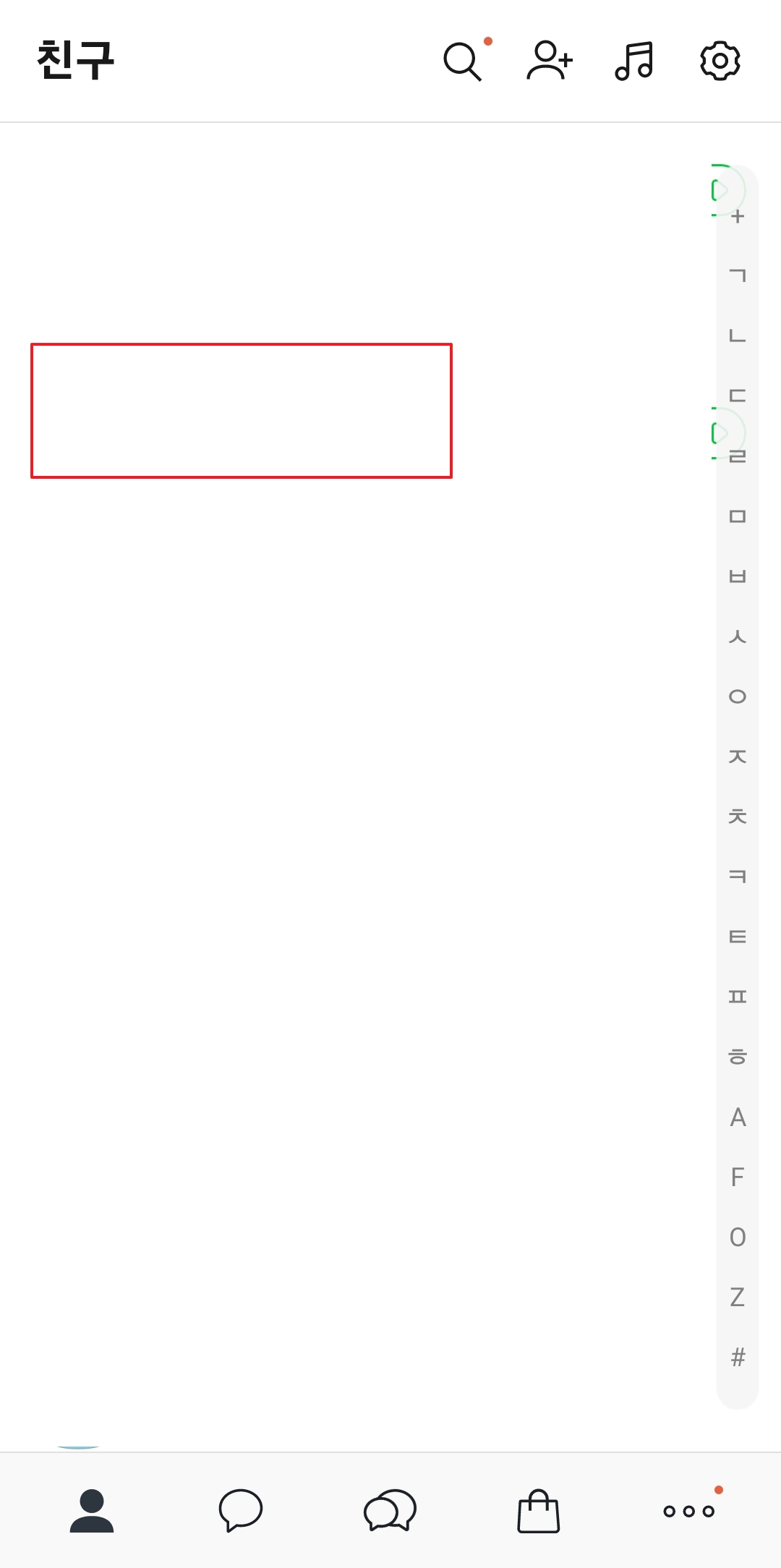 친구 목록에서 이름을 변경할 대상을 찾았다면, 해당 친구의 프로필을 짧게 누르는 것이 아니라 손가락으로 1~2초간 길게 눌러주세요. 짧게 누를 경우 프로필 상세보기 화면으로 넘어가므로 주의해야 합니다.
