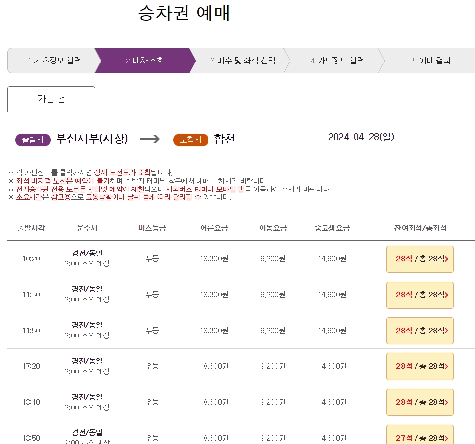 잔여 좌석을 확인하시고 원하는 시간대의 차편을 골라 결제까지 마치시면 모든 순서가 끝납니다. 이런 식으로 미리 확인해 두시면, 당황하지 않고 여유롭게 차에 오르실 수 있을 거예요. 안전한 이동 되시기를 바라겠습니다.