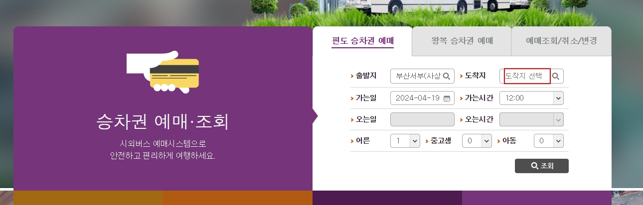 모든 빈칸을 다 채우셨다면, 이제 화면 가운데에 있는 조회 버튼을 꾹 눌러보세요. 그러면 전산 시스템이 알아서 해당 날짜에 다니는 차편들을 시간대별로 쫙 뽑아서 보여줄 겁니다.